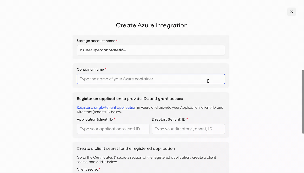 A registered application will allow you to provide SuperAnnotate the necessary roles to access your container.